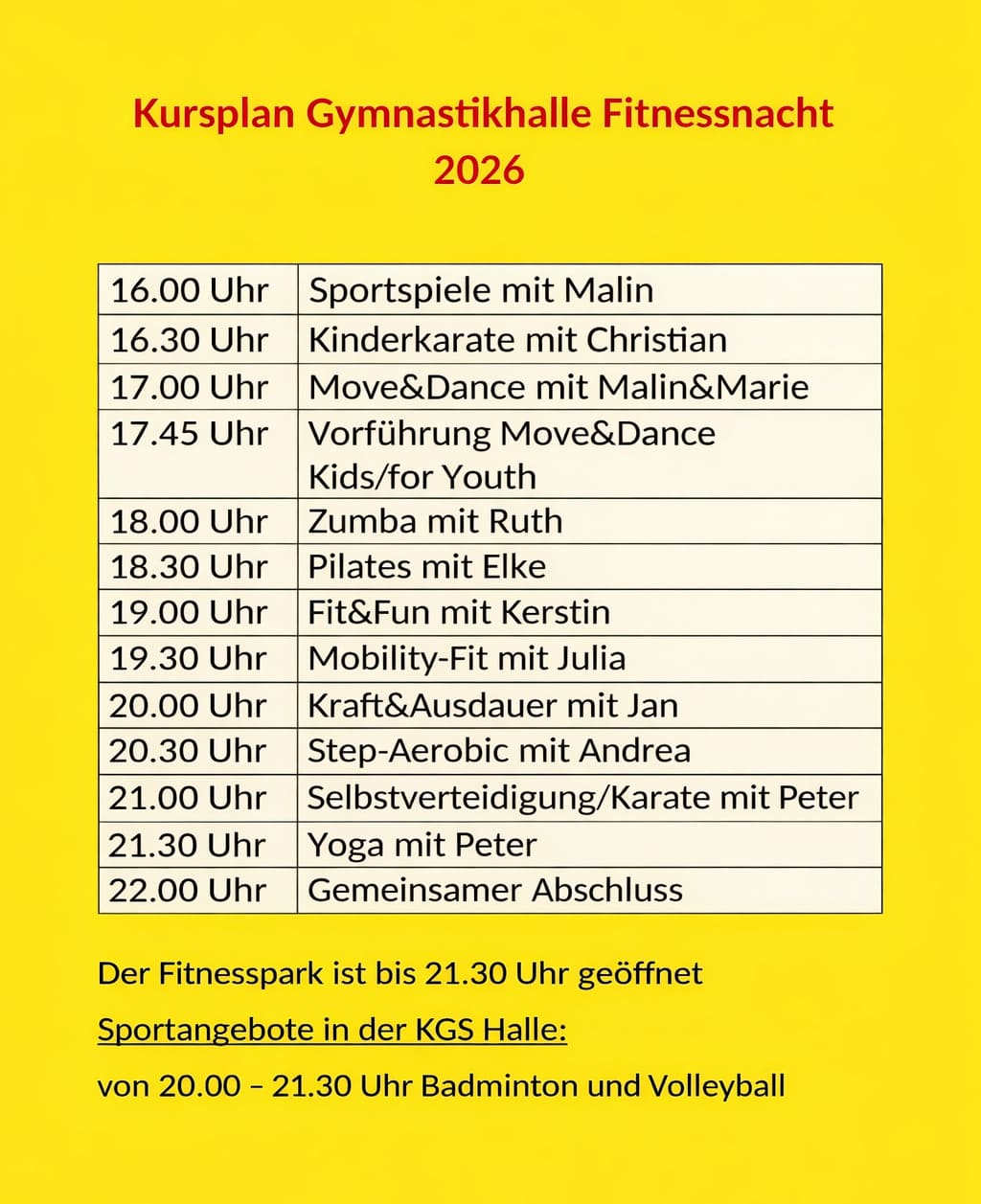 Kursplan Gymnastikhalle Fitnessnacht am 16.01.2026